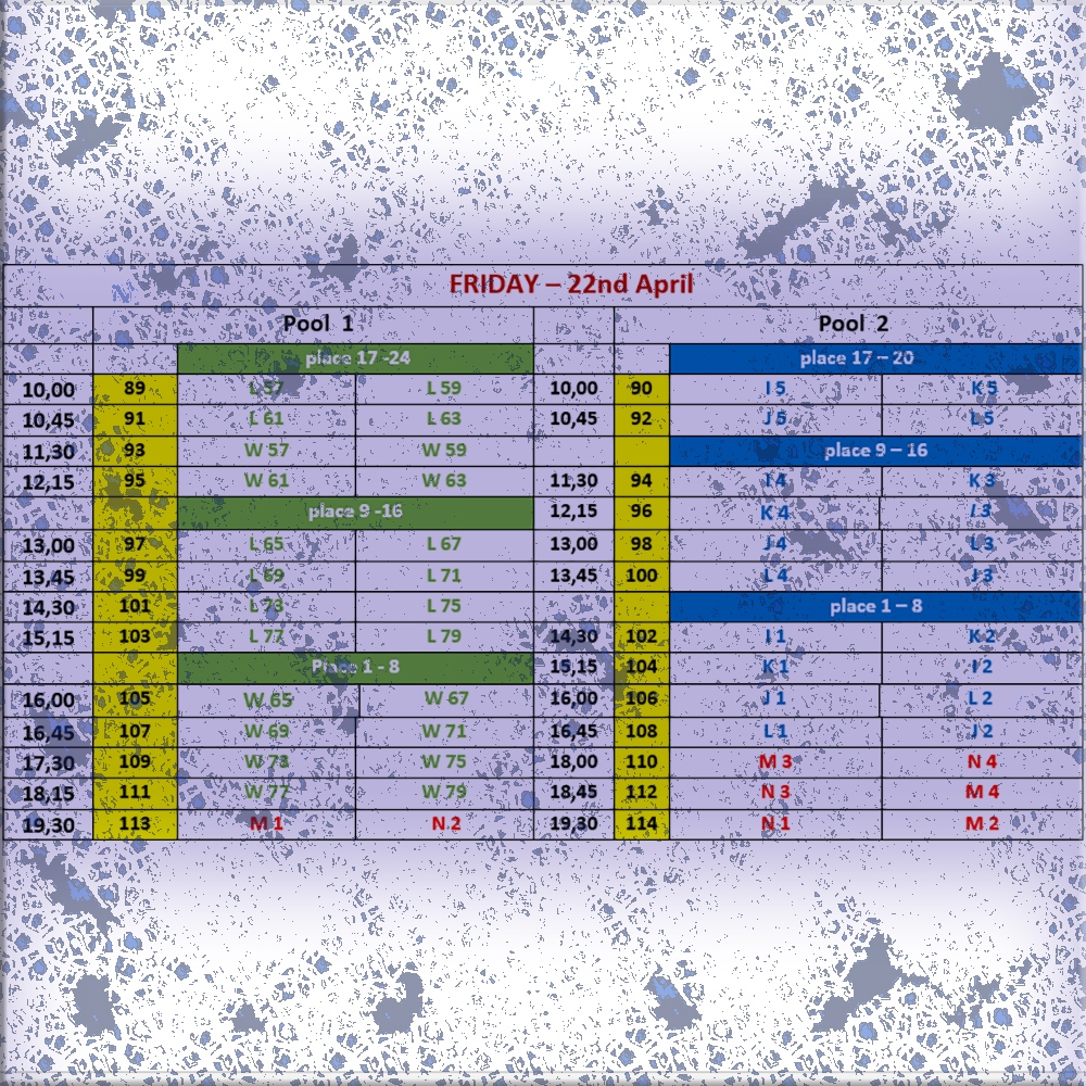 Shortly after the draw, we will publish full schedule with filled teams and complete games.